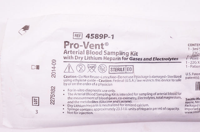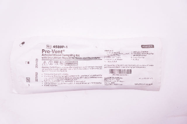 - Smiths Medical 4589P-1 Pro-Vent Arterial Blood Sampling Kit (x)