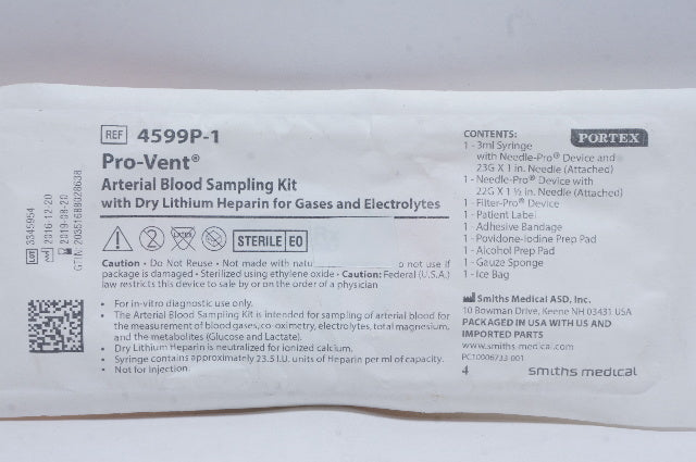 - Smiths Medical 4599P-1 Pro-Vent Arterial Blood Sampling Kit (x)