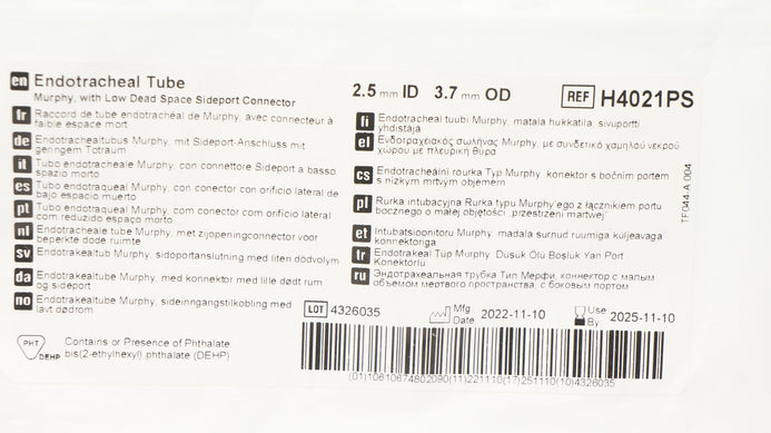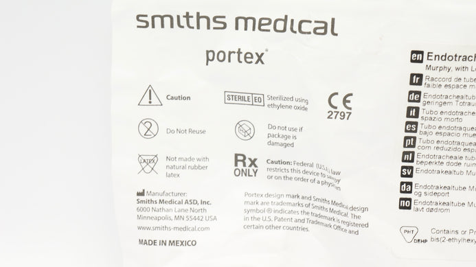 - Smiths Medical H4021PS Portex Endotracheal Tube 2.5mm ID x 3.7mm OD