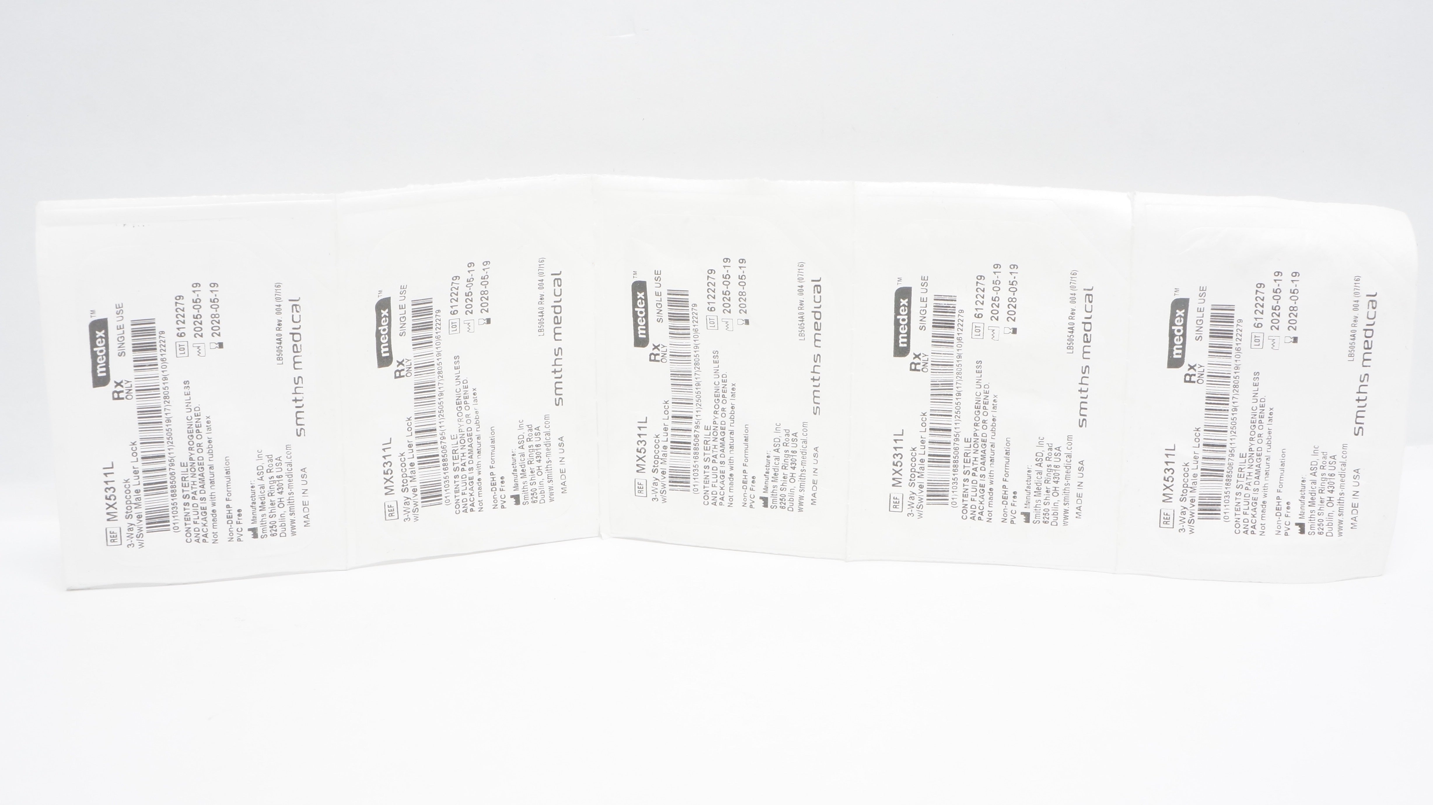 - Smiths Medical MX5311L Medex 3-Way Stopcock w/Swivel Male Luer Lock - Lot of 5