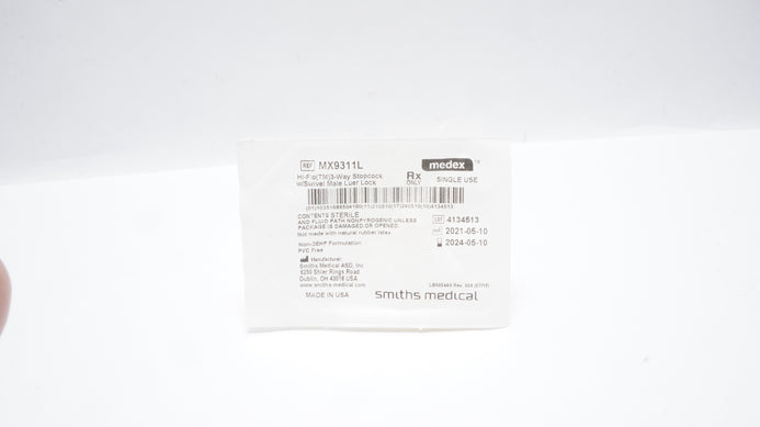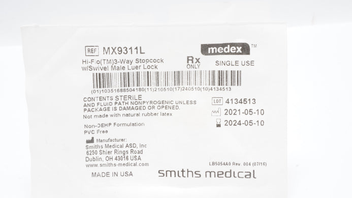 - Smiths Medical MX9311L Hi-Flow 3-Way Stopcock W/Swivel Male Luer Lock (x)