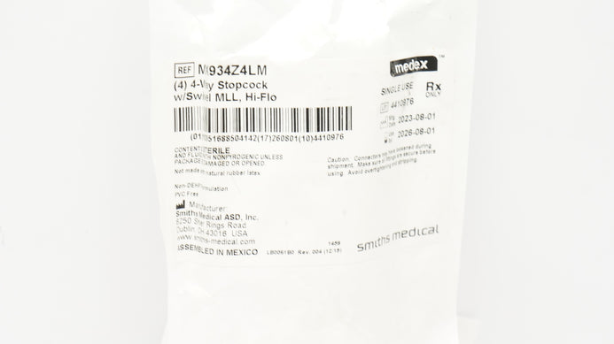 - Smiths Medical MX934Z4LM Medex 4-Way Stopcock With Swivel MLL, Hi-Flo