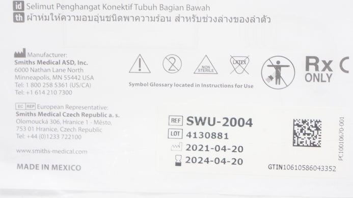 - Smiths Medical SWU-2004 Snuggle Warm Lower Body Convective Warming Blanket (x)