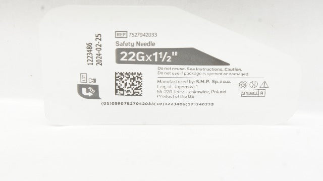 - SMP 7527942033 Safety Ndle. 22G x 1-1/2inch (x)