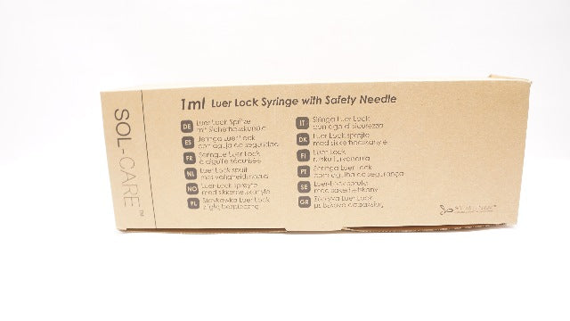 - SOL-Care 12558SN 1mL Luer Lock Syringe w/Safety Ndle. 25G x 5/8In - Box of 50