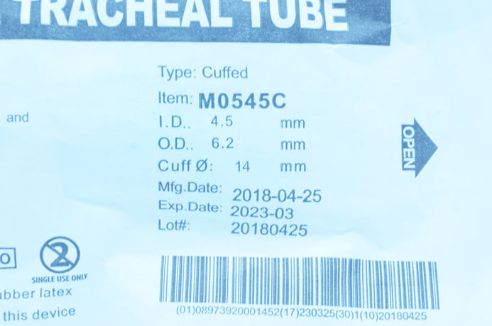 - SourceMark M0545C Preformed Oral Tracheal Tube, Cuffed 4.5mm ID 6.2mm OD