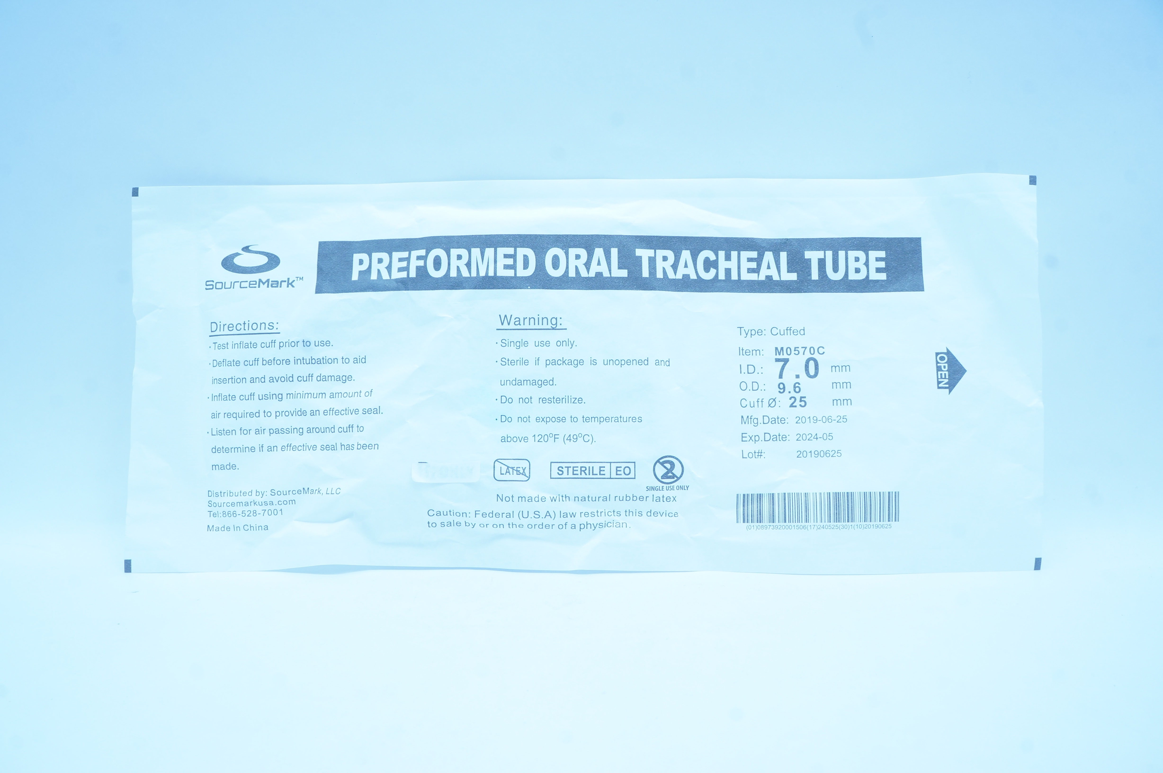 - SourceMark M0570C Preformed Oral Tracheal Tube, Cuffed 7.0mm ID 9.6mm OD