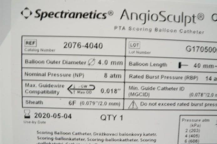 - Spectranetics 2076-4040 Scrolling Balloon Cath. 4.0mm x 40mm x 137cm (x)