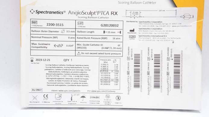 - Spectranetics 2200-3515 AngioSculpt Scrolling Balloon Cath. 137cm x 3.5 x 15mm(x)