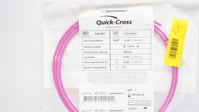 - Spectranetics 518-037 Quick-Cross Support Cath. 5F x 135cm x 0.035inch (x)