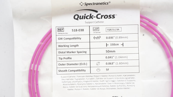 - Spectranetics 518-038 Quick-Cross Support Cath. 150cm x 0.035inch x 5F (x)