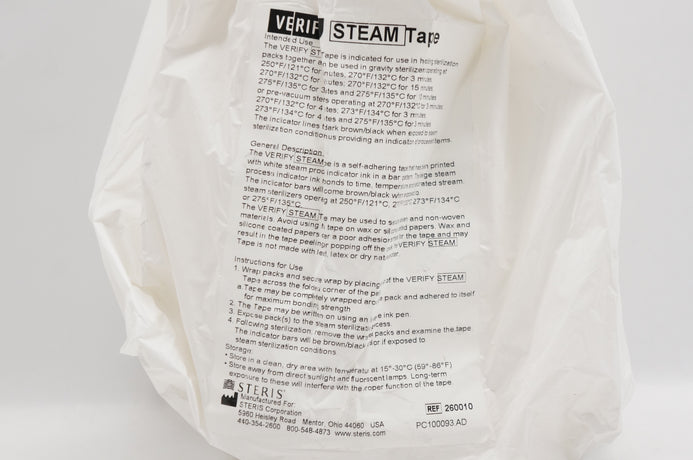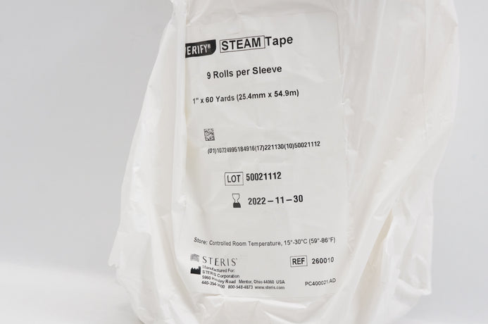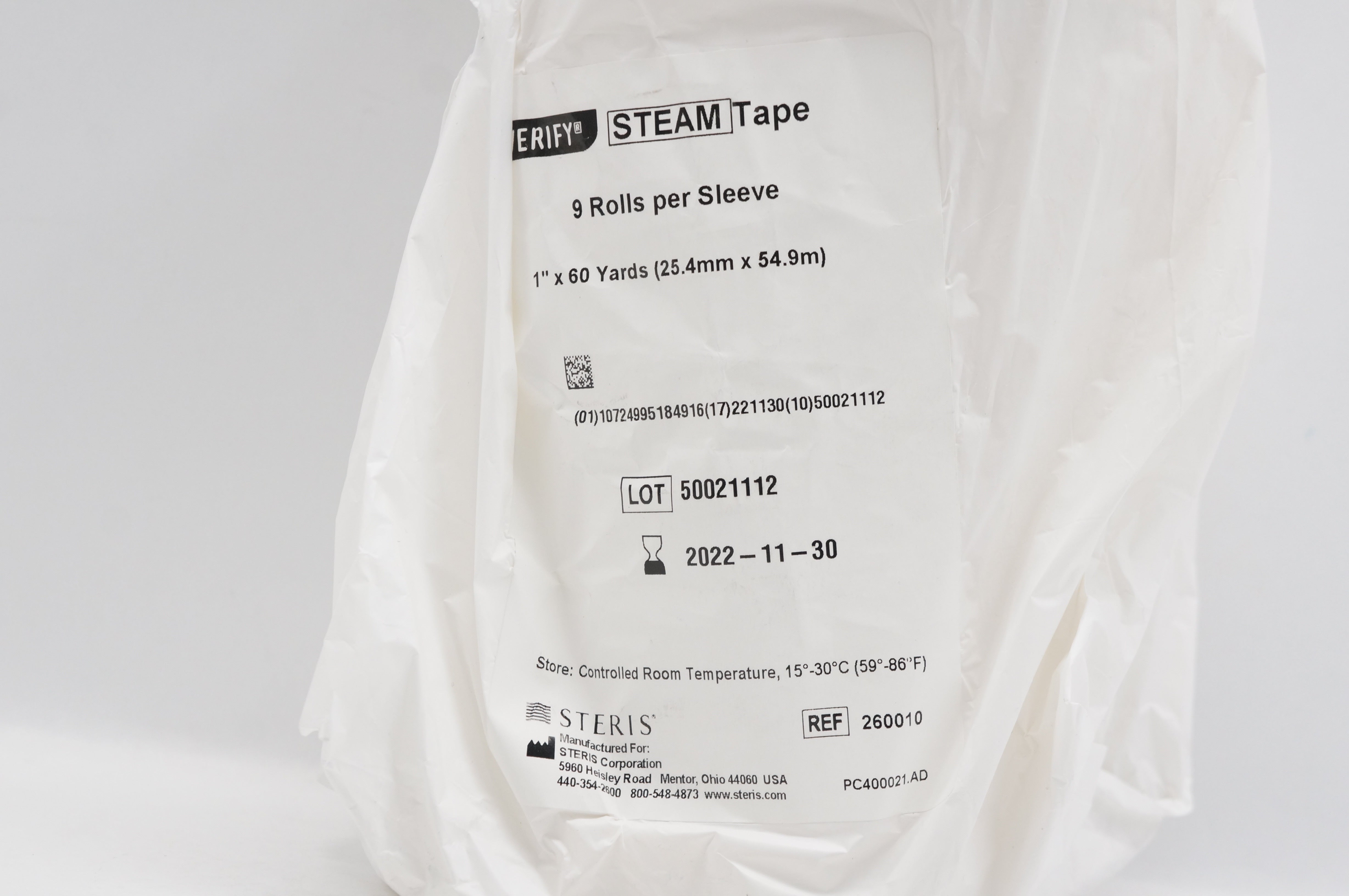 - Steris 260010 Verify Steam Tape 9 Rolls Per Sleeve 1inch x 60yds