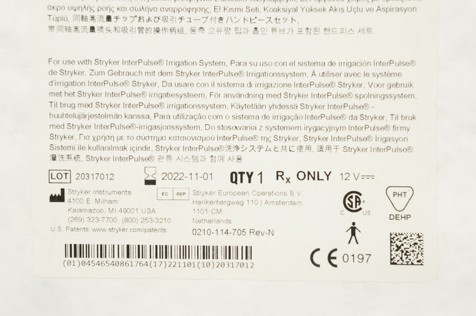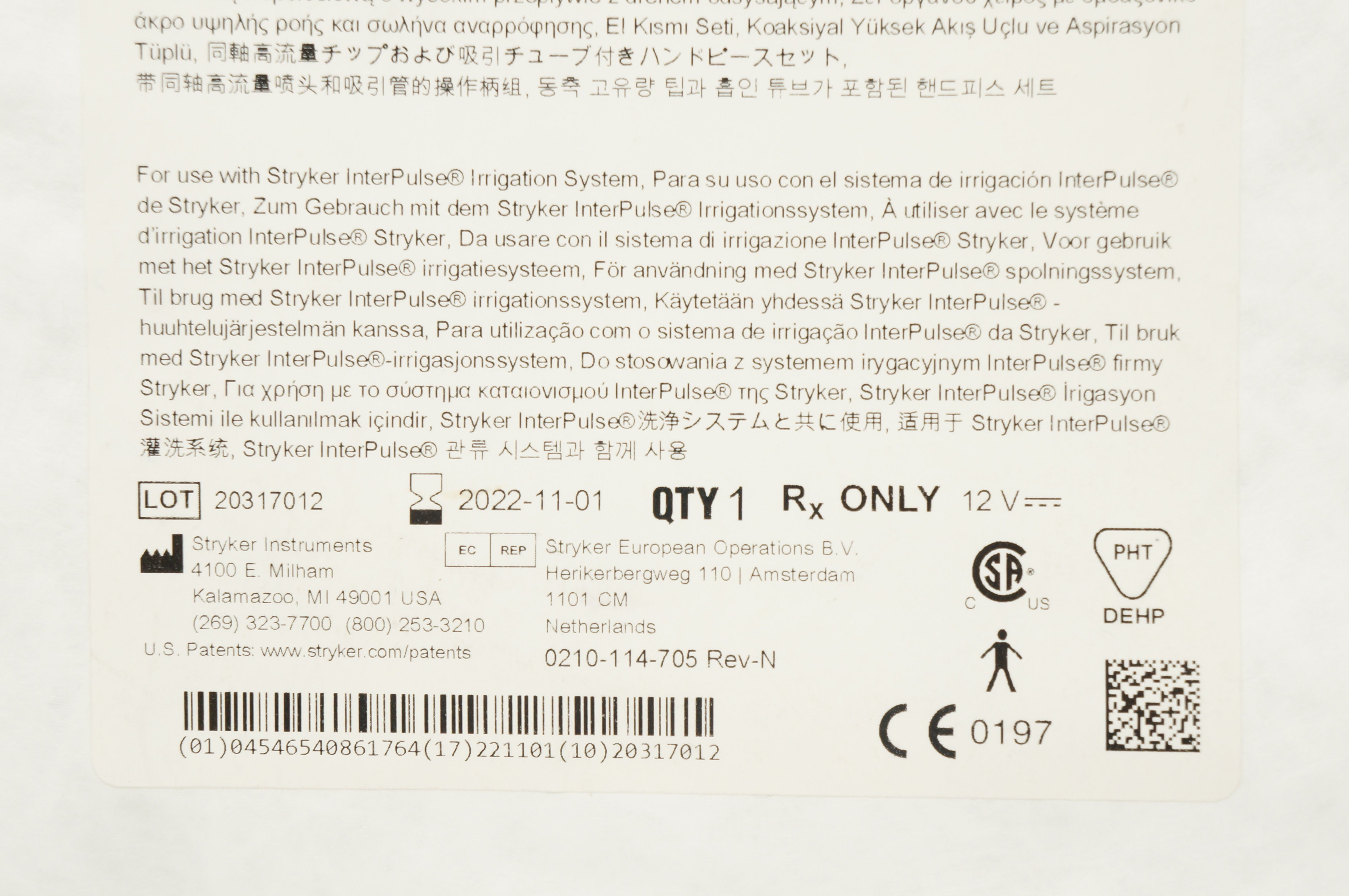 - Stryker 0210-114-100 InterPulse Handpiece Set w/Coaxial High Flow Tip & Tube (x)