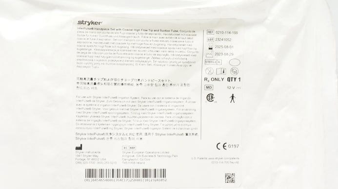 Stryker 0210-114-100 InterPulse Handpiece Set with Coaxial High Flow Tip & Tube
