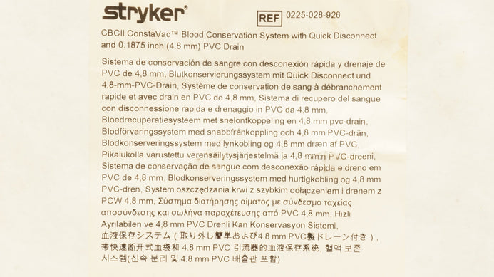 - Stryker 0225-028-926 CBCII ConstaVac Blood Conservation System (x)