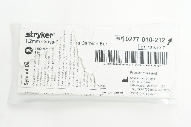 - Stryker 0277-010-212 Cross-Cut Fissure Carbide Bur, 1.2mm