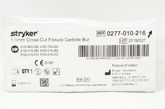Stryker 0277-010-216 Cross-Cut Fissure Carbide Bur 1.6mm