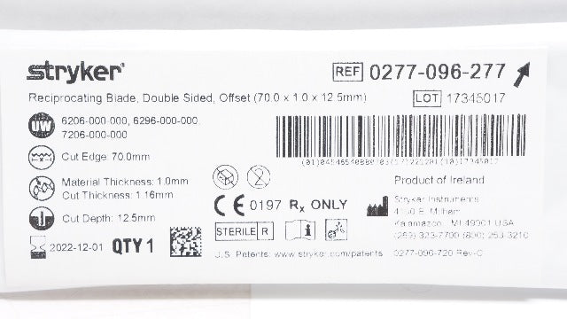 - Stryker 0277-096-277 Reciprocating Blade Double Sided, Offset 70.0 x 12.5mm (x)
