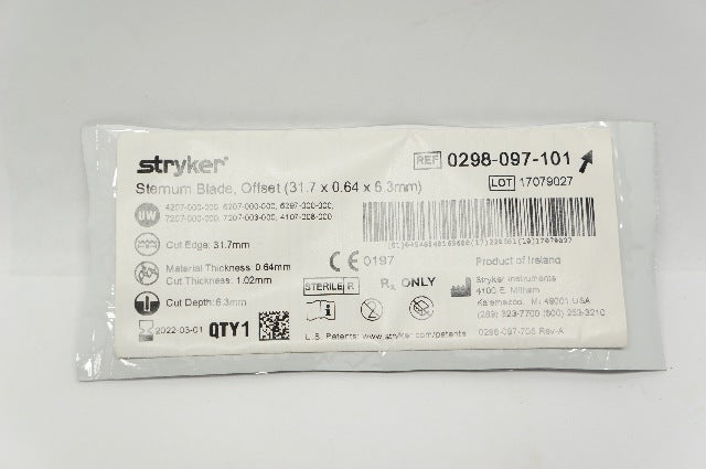 Stryker 0298-097-101 Sternum Blade Offset 31.7 x 0.64 x 6.3mm (x)