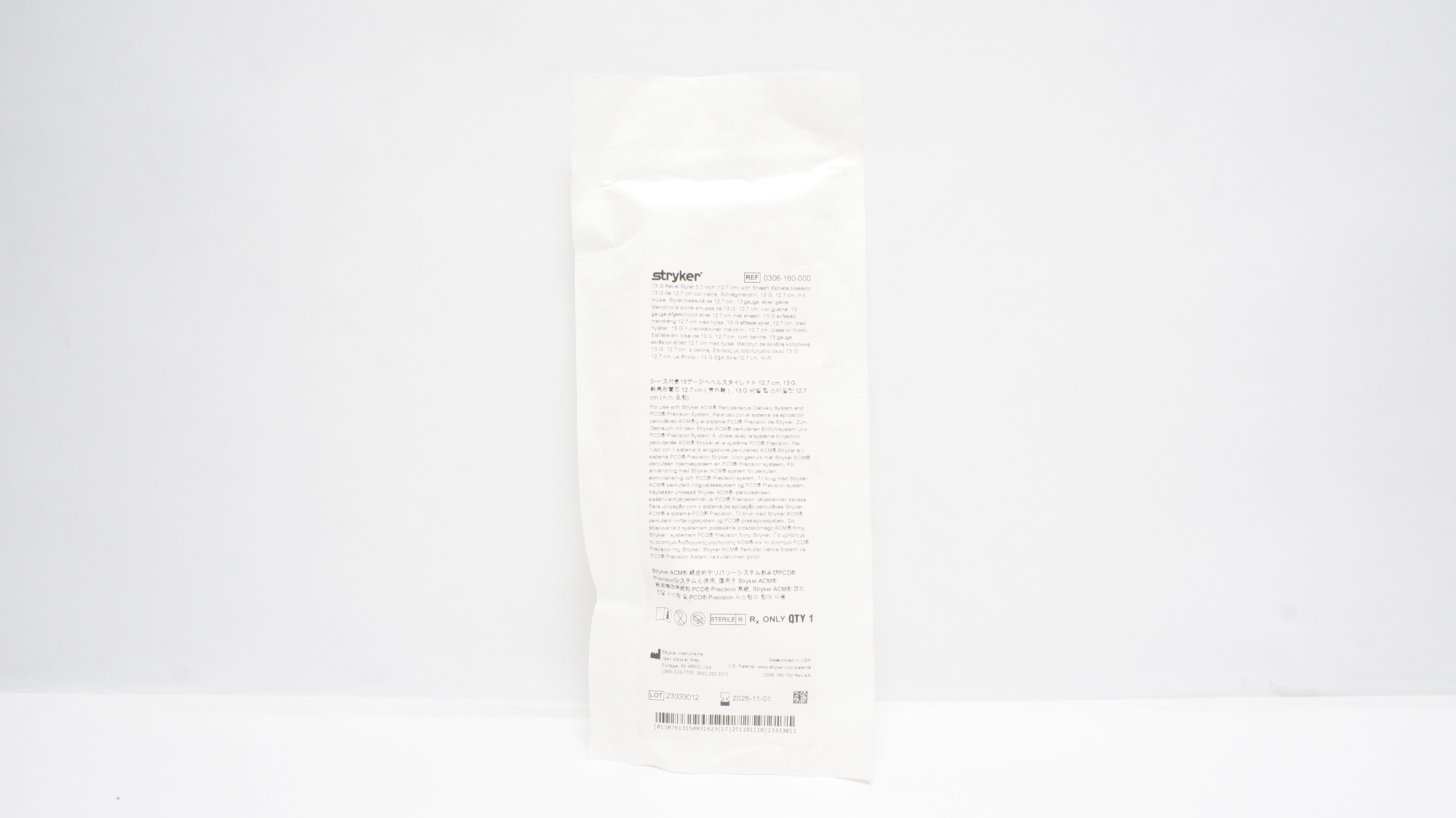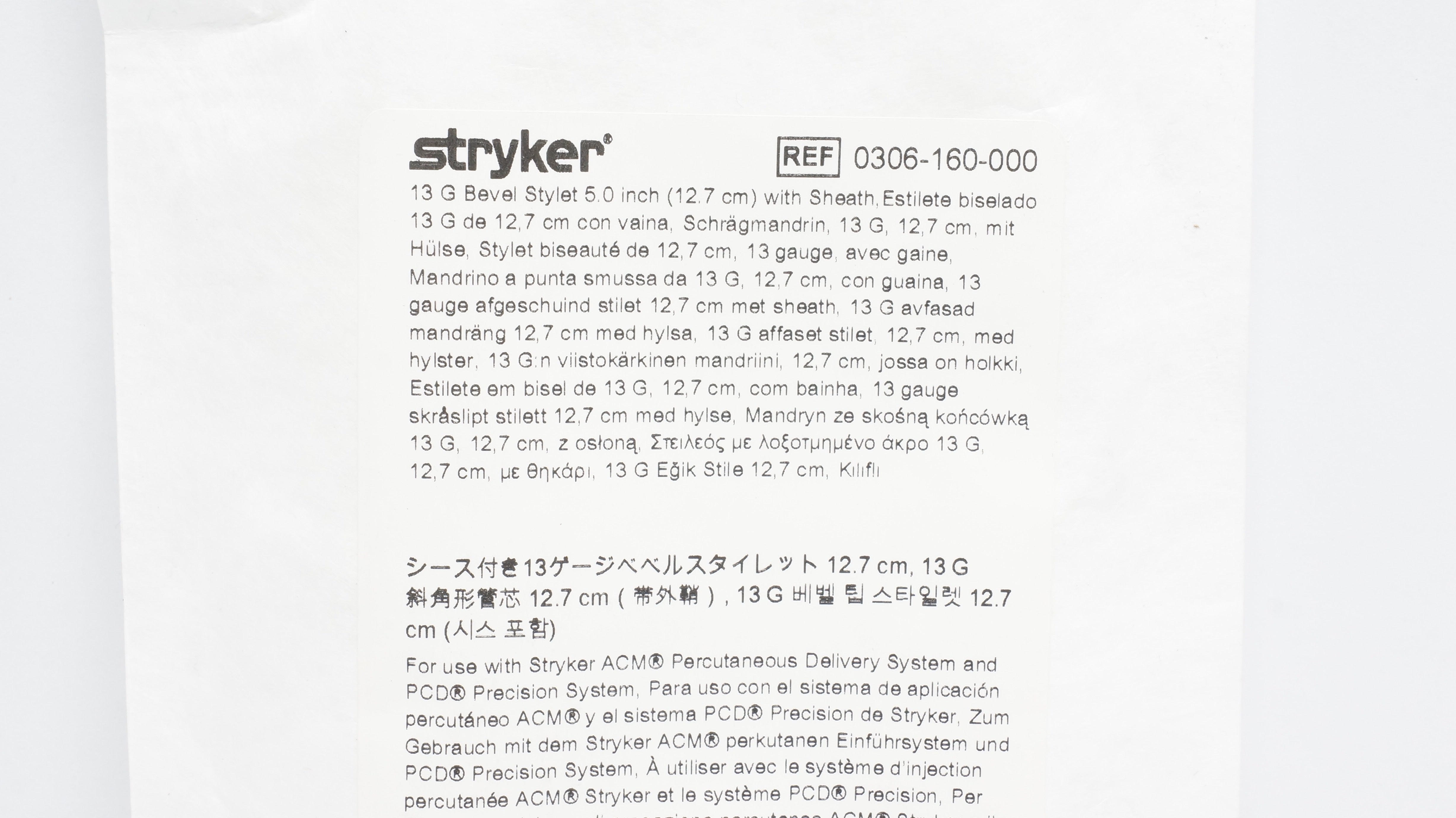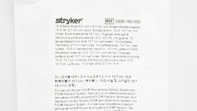 Stryker 0306-160-000 13G Bevel Stylet 5.0In W/Sheath
