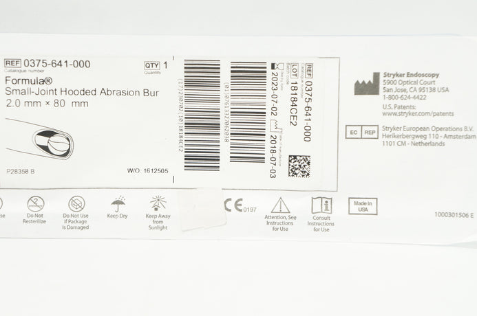 Stryker 0375-641-000 Hooded Abrasion Bur Small Joint 2.0mm
