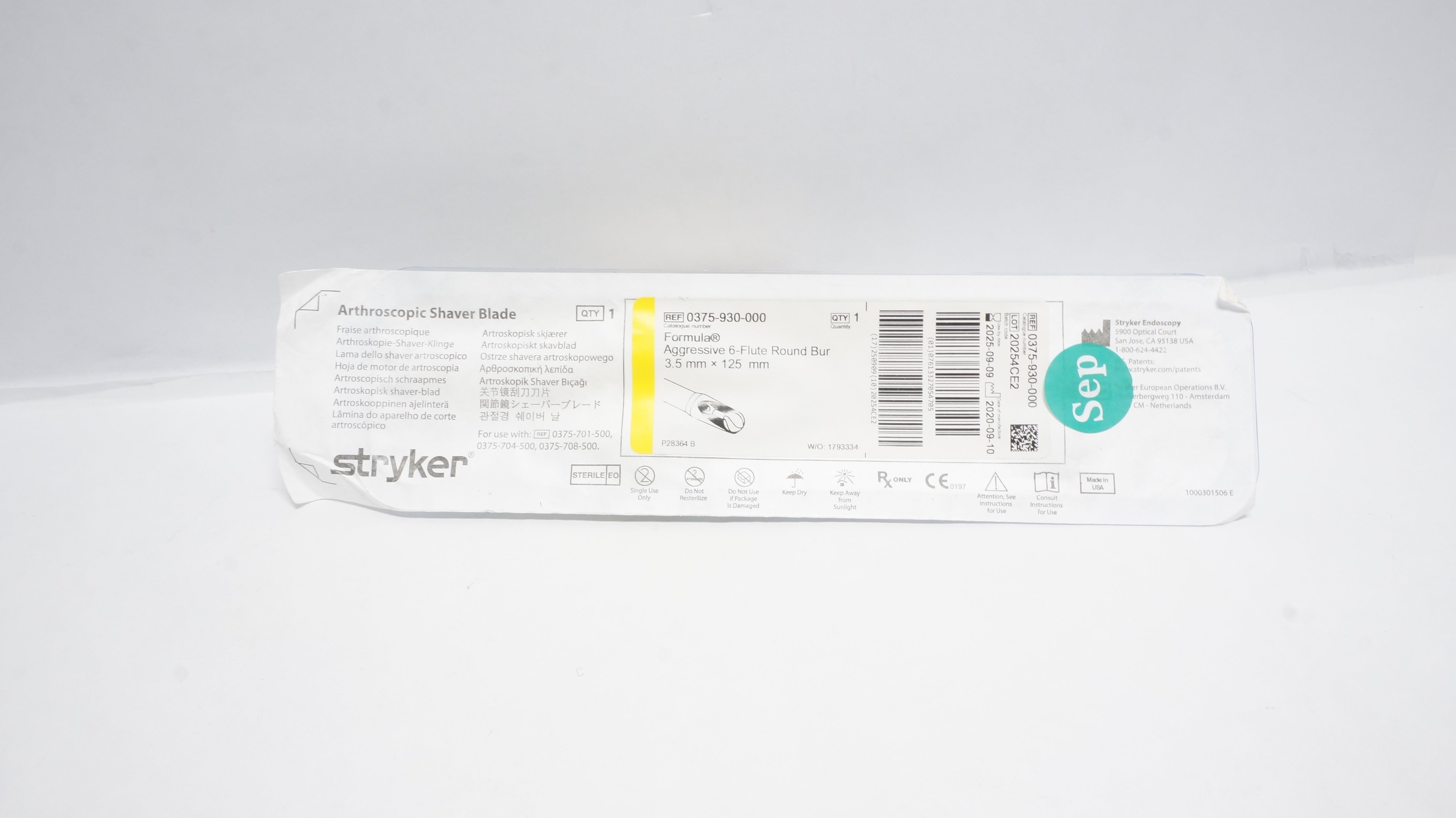 - Stryker 0375-930-000 Arthroscopic Shaver Blade 3.5mm x 125mm (x)