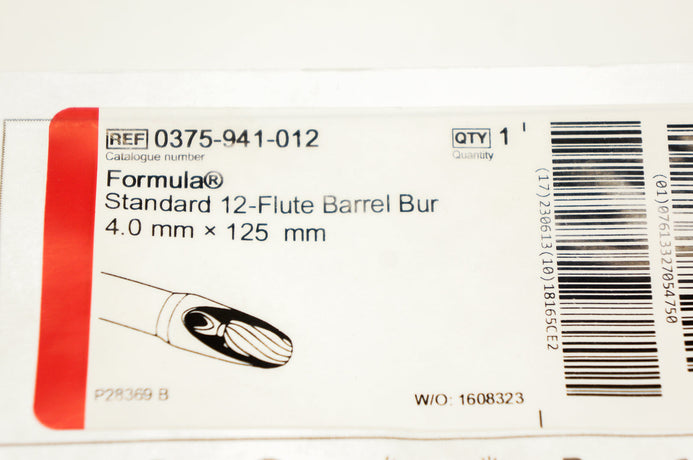 - Stryker 0375-941-012 Formula Standard 12-Flute Barrel Bur 4.0mm x 125mm