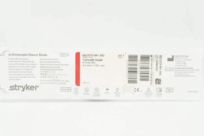 - Stryker 0375-941-500 Formula Slap 6-Flute Bur 4.0mm x 125mm