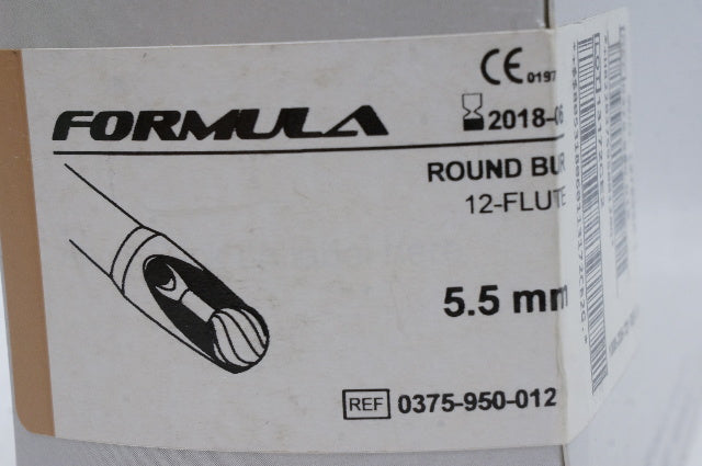 - Stryker 0375-950-012 FORMULA Round Bur 12-Flute 5.5mm (x) - Box of 5