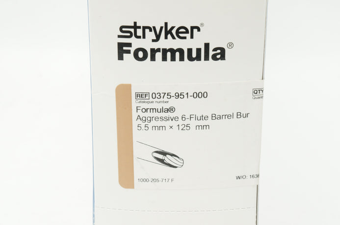 Stryker 0375-951-000 Formula Arthroscopy Blade Barrel Bur 6-Flute 5.5mm-Box of 5