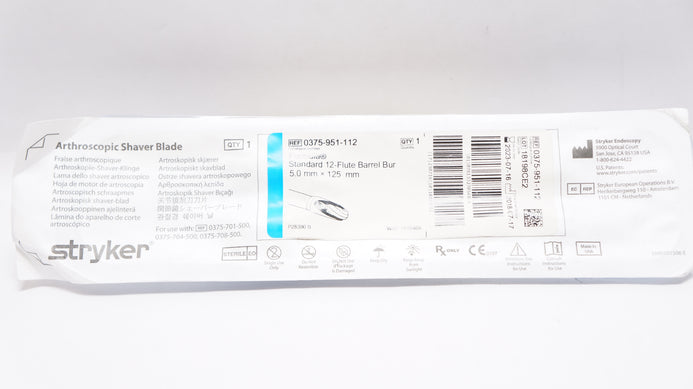 Stryker 0375-951-112 Arthroscopic Shaver Blade Standard 12-Flute Barrel Bur 5.0mm x 125mm
