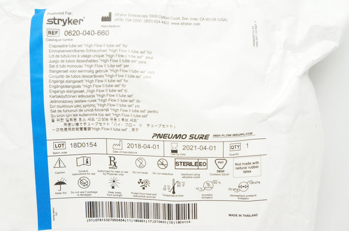Stryker 0620-040-660 Pneumo Sure Disposable Tube Set High Flow II Tube Set For