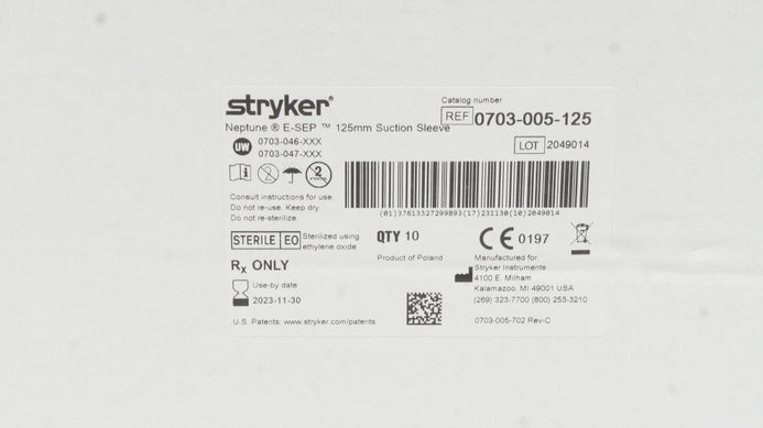 - Stryker 0703-005-125 Neptune E-Sep Suction Sleeve 125mm (x) - Box of 10