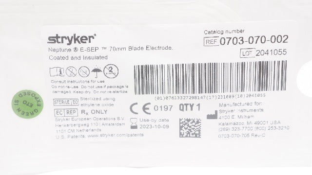 Stryker 0703-070-002 Neptune E-SEP 70mm Blade Electrode Coated & Insulated