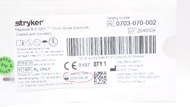 Stryker 0703-070-002 Neptune E-SEP 70mm Blade Electrode Coated & Insulated (x)
