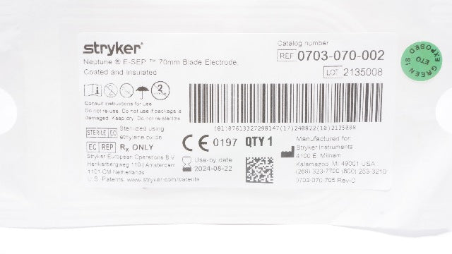 Stryker 0703-070-002 Neptune E-SEP 70mm Blade Electrode Coated & Insulated (x)
