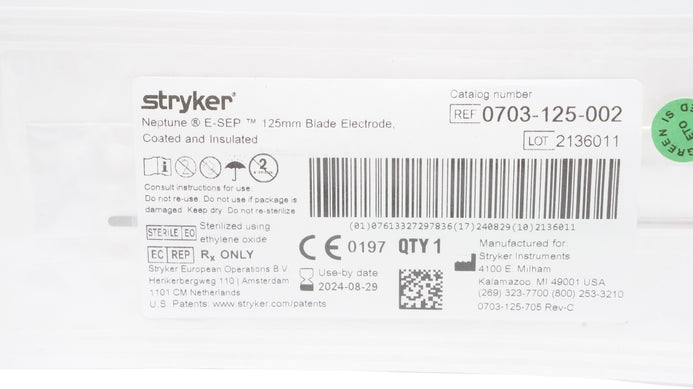 - Stryker 0703-125-002 Neptune E-SEP 125mm Blade Electrode Coated & Insulated (x)