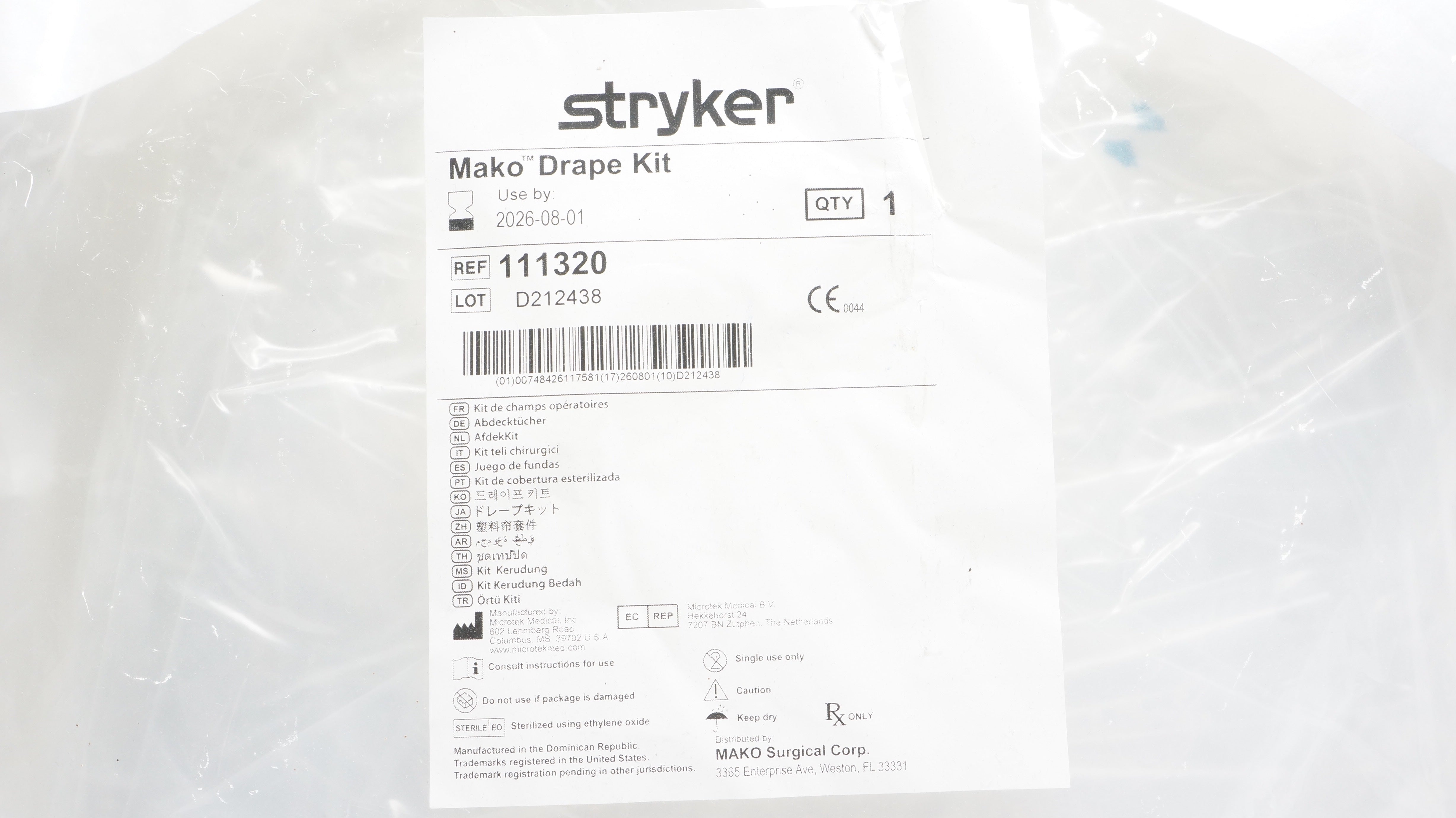 - Stryker 111320 Mako Drape Kit