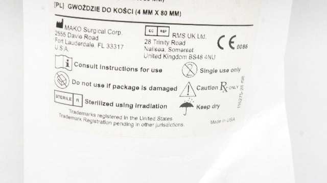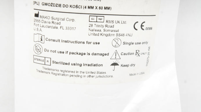 - Stryker 144080 Mako Bone Pins 4mm x 80mm (x) - Pack of 2