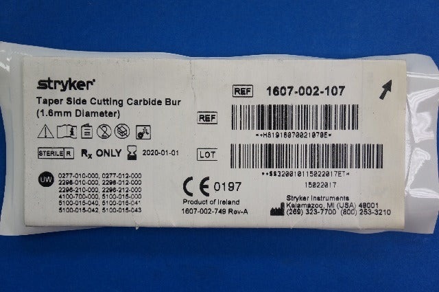 Stryker 1607-002-107 Taper Side Cutting Carbide B u r 1.6mm