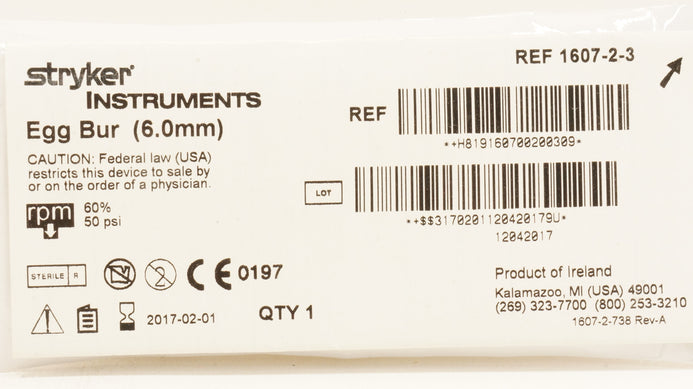 - Stryker 1607-2-3 Egg Bur 6.0mm (x)