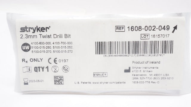 - Stryker 1608-002-049 Twist Drill Bit 2.3mm (x)