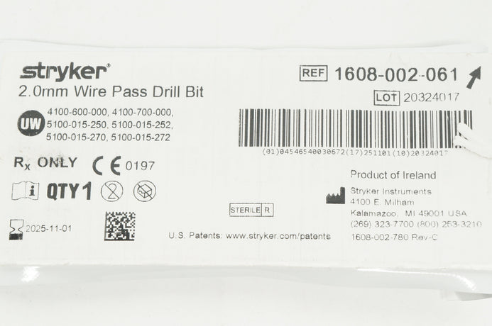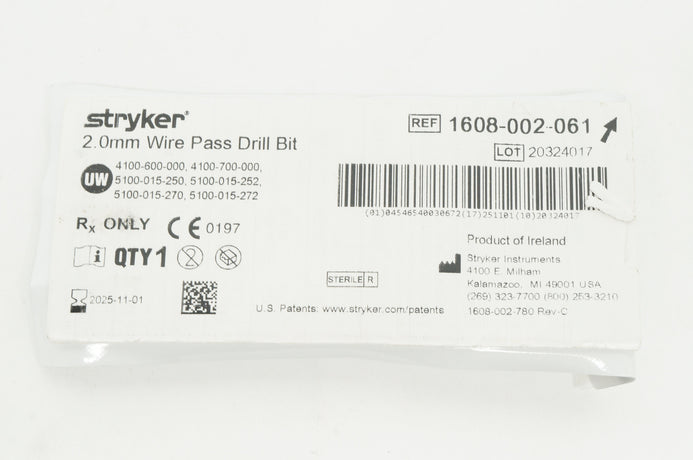 Stryker 1608-002-061 Wire Pass Drill Bit 2.0mm