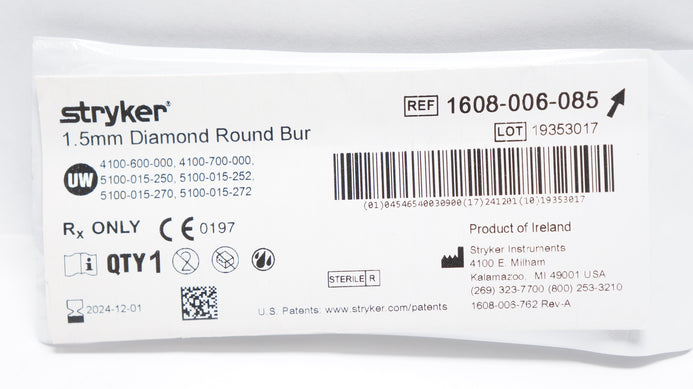 - Stryker 1608-006-085 1.5mm Diamond Round Bur