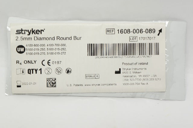 Stryker 1608-006-089 Diamond Round Bur 2.5mm