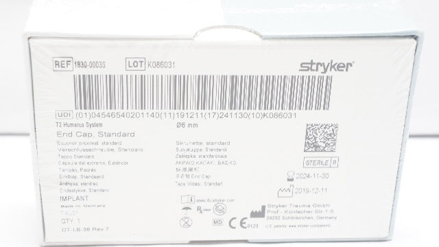- Stryker 1830-0003S End Cap, Standard, T2 Humerus System 6mm (x)