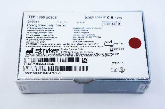 - Stryker 1896-5030S Locking Screw, Fully Threaded Diam. 5 x 30mm (x)