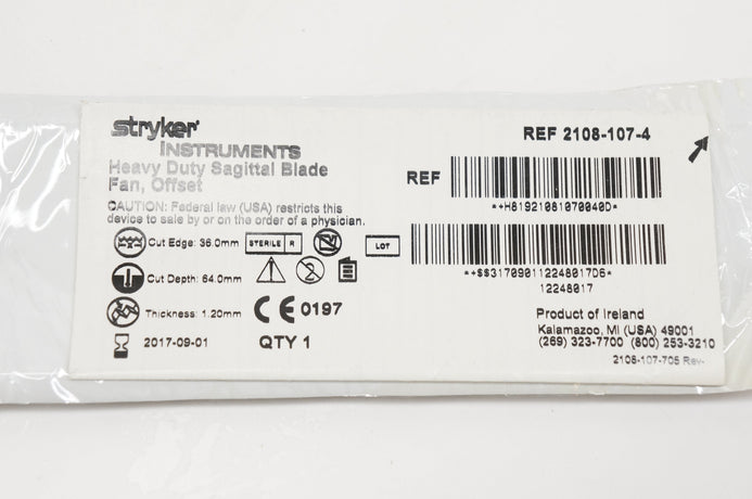 - Stryker 2108-107-4 Heavy Duty Sagittal Blade Fan, Offset 36mm x 64mm x 1.20mm(x)