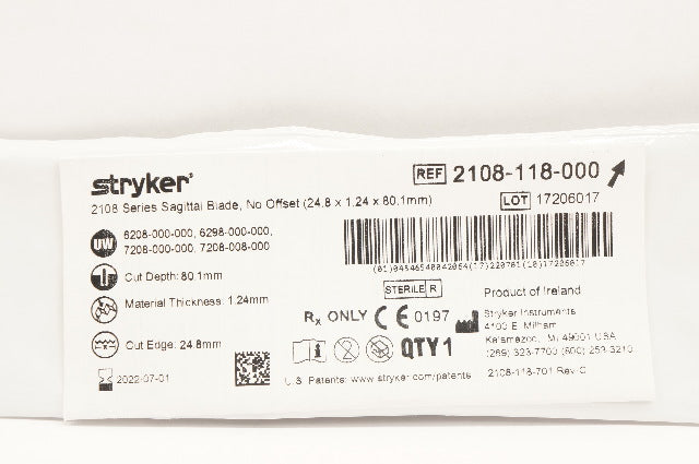 - Stryker 2108-118-000 Sagittal Blade Thick No Offset