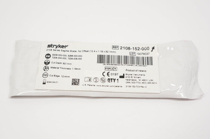 - Stryker 2108-152-000 2108 Series Sagittal Blade, No Offset 12.4 x 1.19 x 82.1mm